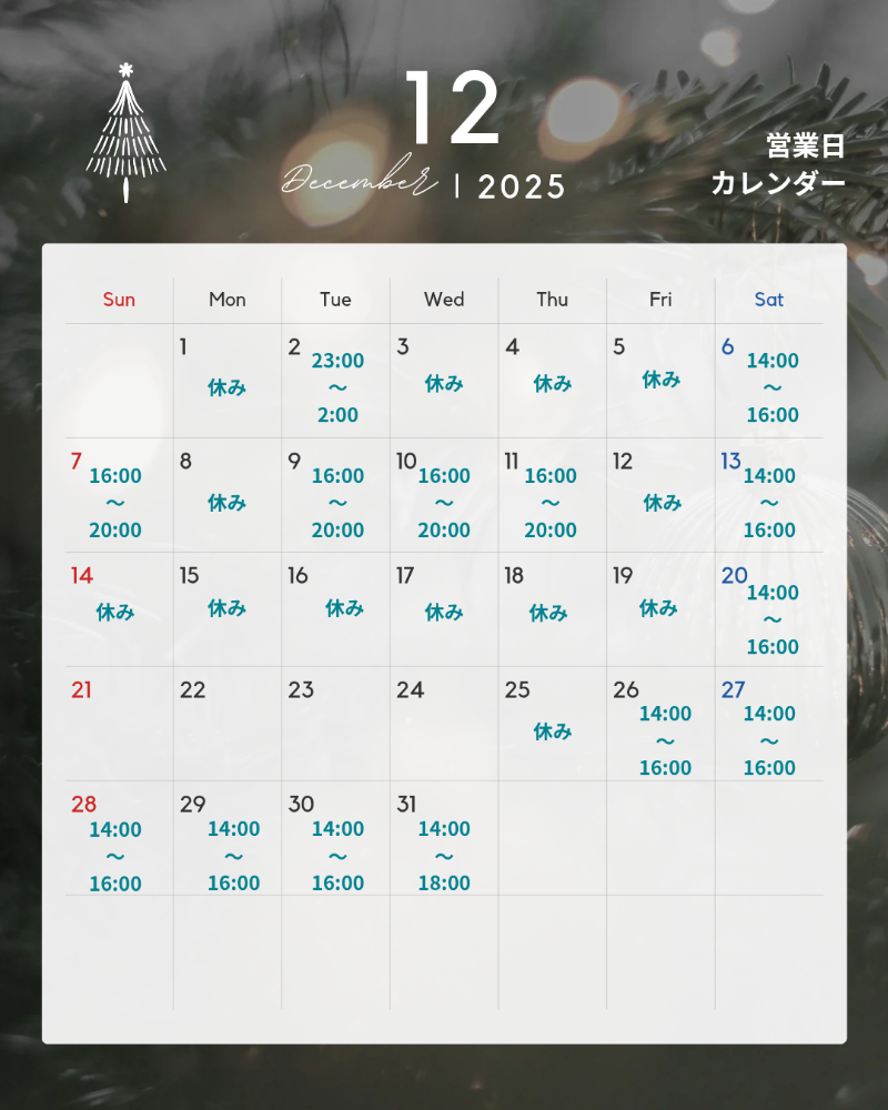 カレンダーをご確認の上、詳しくはお問い合わせください。
